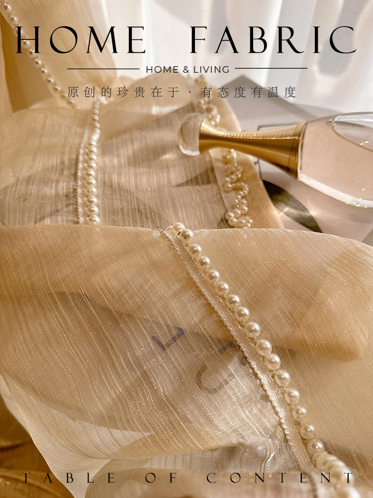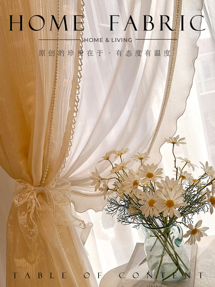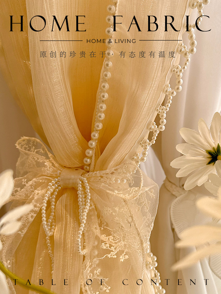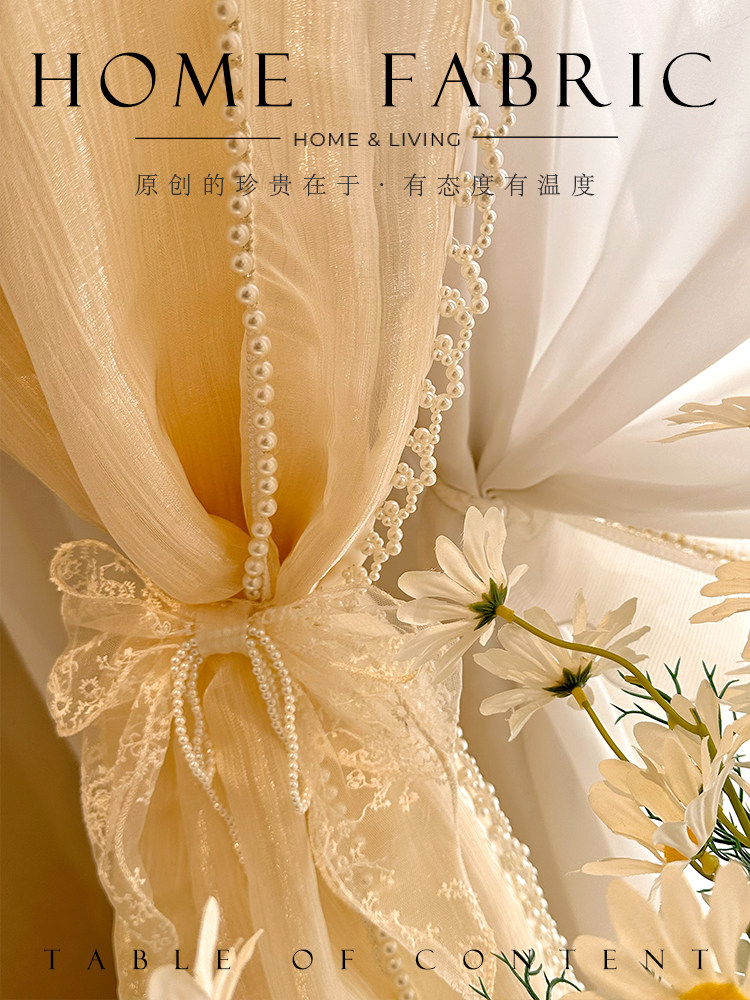 淘宝薇薇安的裙摆纱 法式浪漫蕾丝复古珍珠花边仙女鎏金纱帘窗帘窗纱