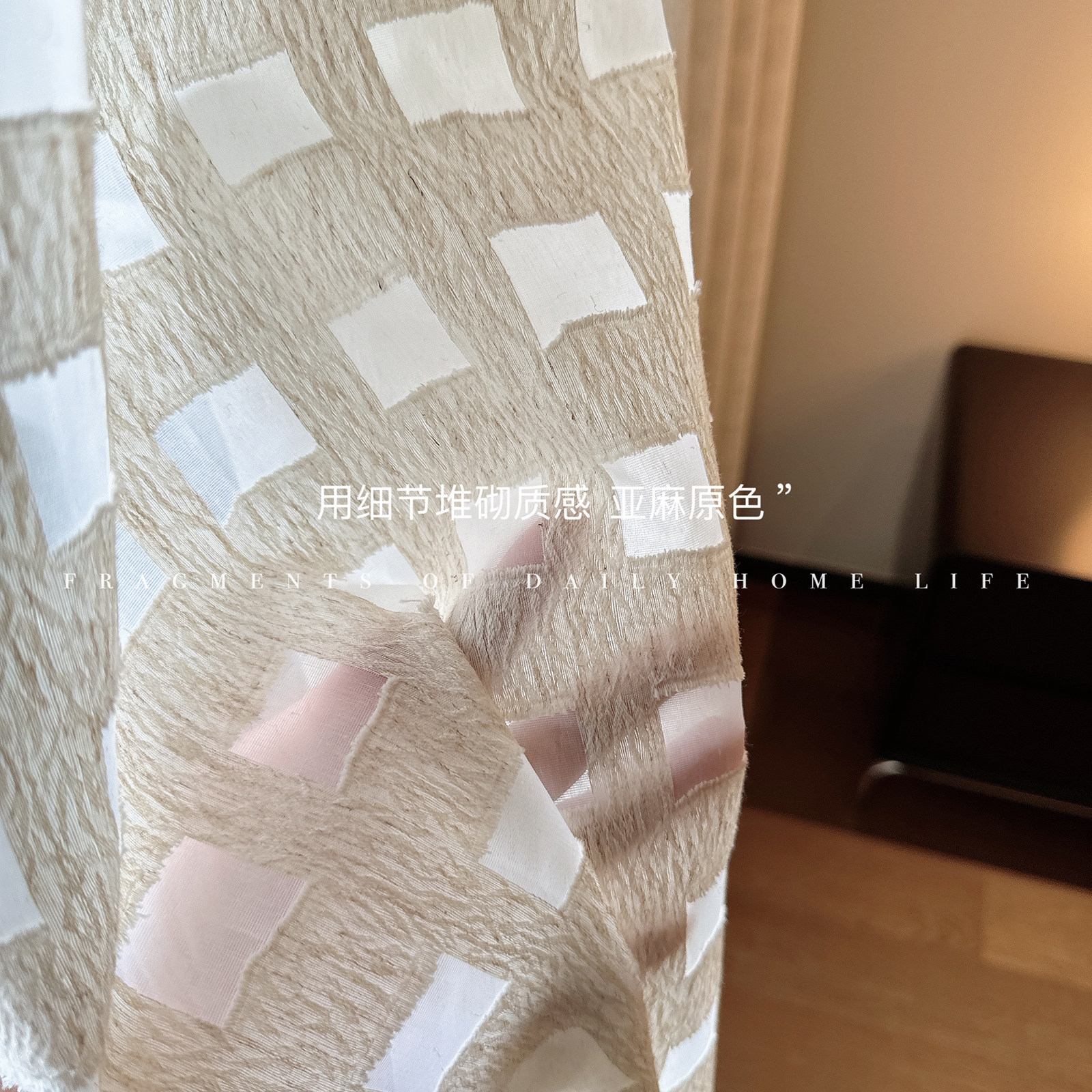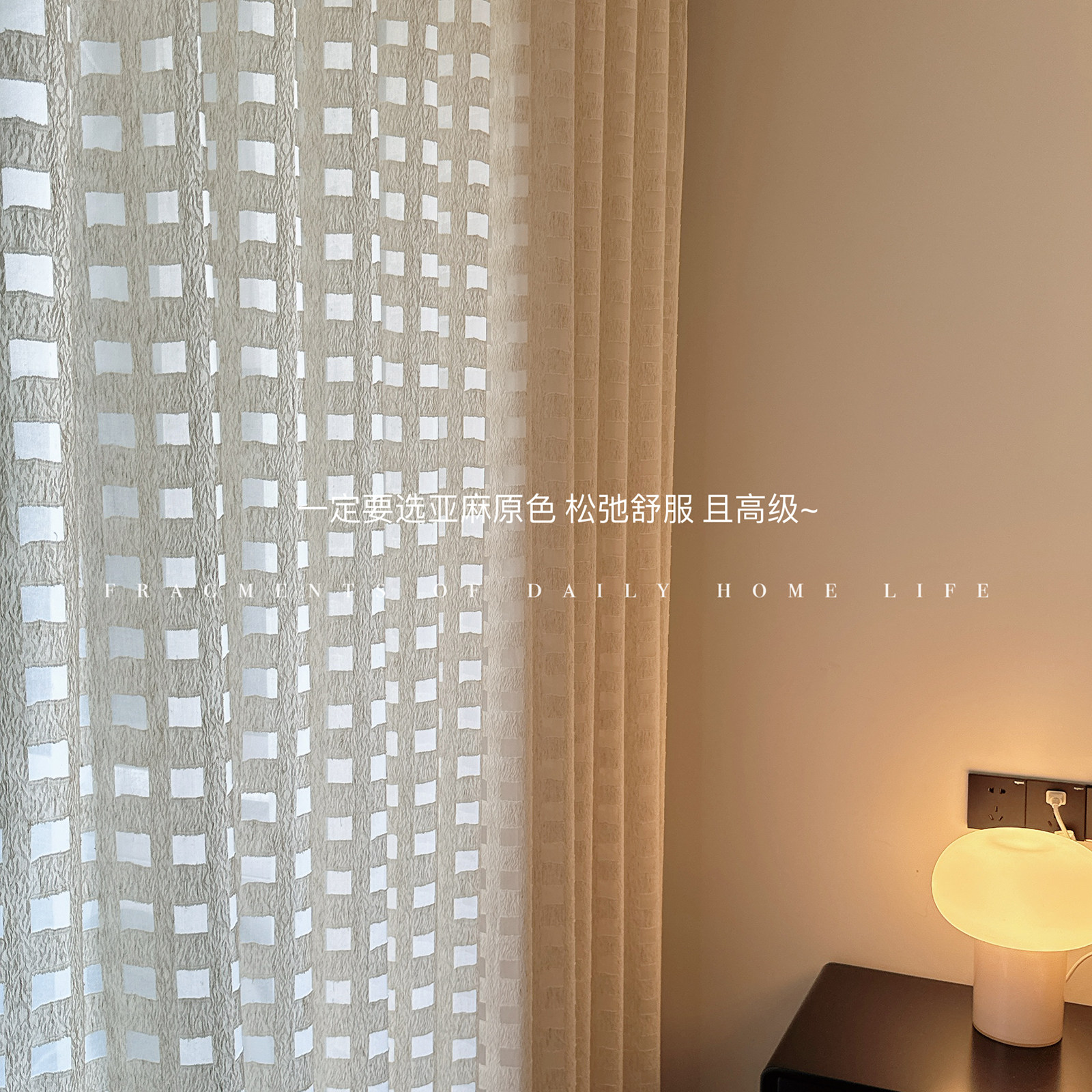淘宝C先生 小方格中古奶油亚麻窗纱氛围感透光不透人卧室阳台客厅纱帘