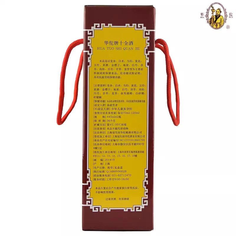 上海冠生园华佗牌十全酒是一款融合传统中医养生理念的黄酒保健酒,酒精度24.5度,口感醇厚,温润适口。精选优质糯米、小麦及多种名贵中药材,经古法酿造,富含氨基酸与微量元素,具有益气养血、健脾暖胃、舒筋活络之功效。礼盒装含445ml×2瓶酒,并贴心配备专用酒杯,设计典雅大气,适合自饮或馈赠亲友。作为百年民族品牌冠生园的匠心之作,华佗十全酒传承“药食同源”智慧,兼顾健康与品味,是节日团聚、养生保健的理想之选,彰显东方养生文化的独特魅力。