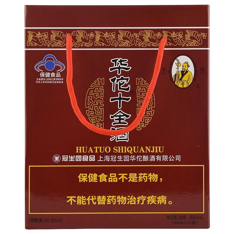 淘宝上海冠生园华佗牌十全酒24.5度445ml×2瓶带杯礼盒黄酒保健酒