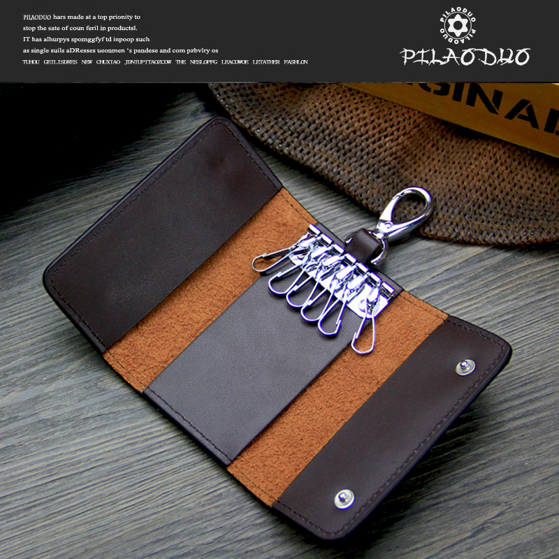 淘手工钥匙包男女牛皮大容量真皮钱包锁匙包复古多功能卡包零钱包潮