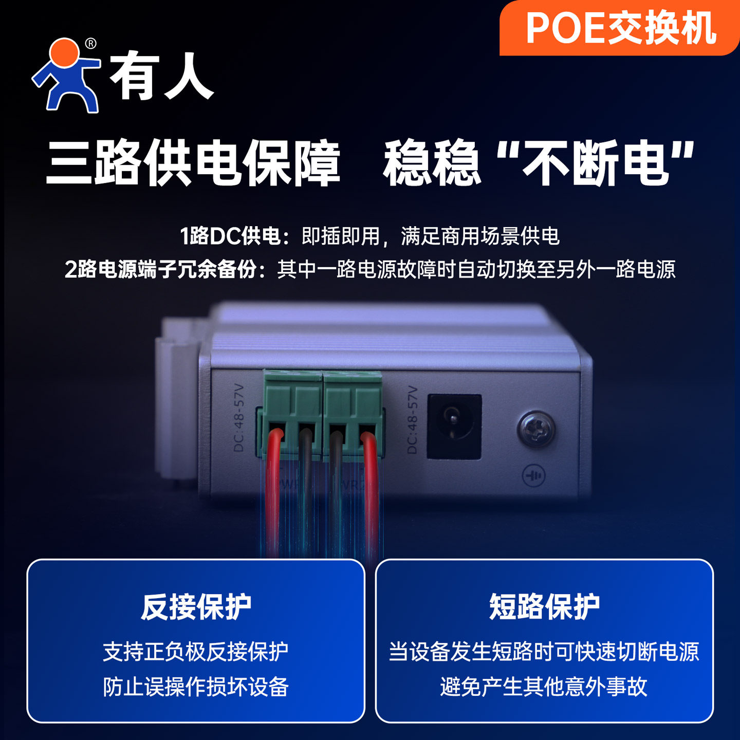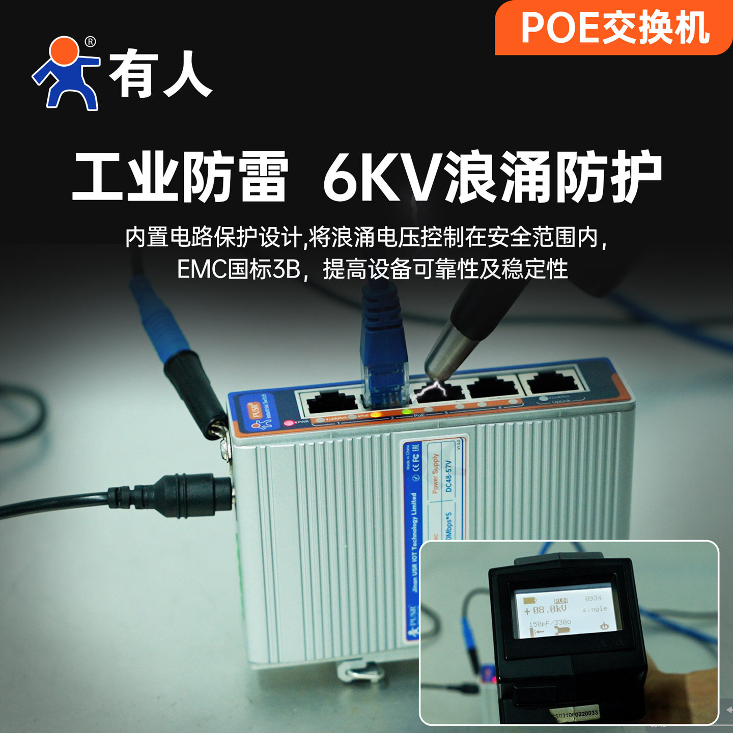 天猫有人工业级POE交换机监控专用5/8/16/24口百兆千兆导轨式poe供电国标48V网络分线器宽温6KV防雷小体积ISF/ISG