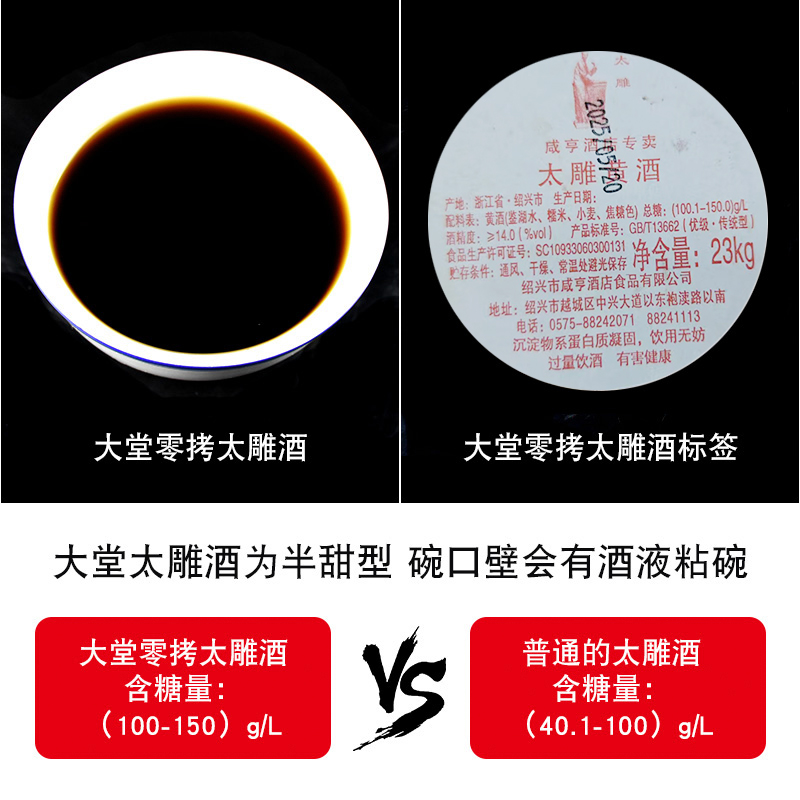 淘宝绍兴咸亨酒店大坛原酒太雕酒大堂同款1-3斤糯米老酒半甜型黄酒