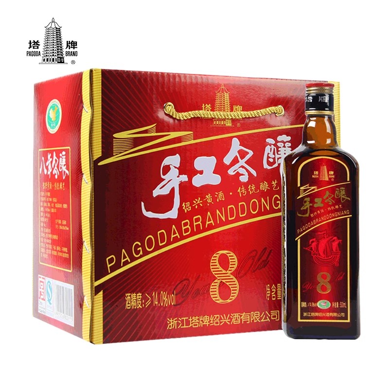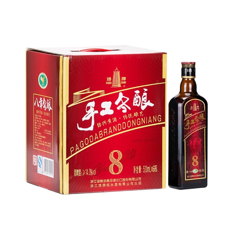 天猫塔牌绍兴黄酒八年陈手工冬酿花雕酒500ml*6瓶装整箱加饭酒糯米酒