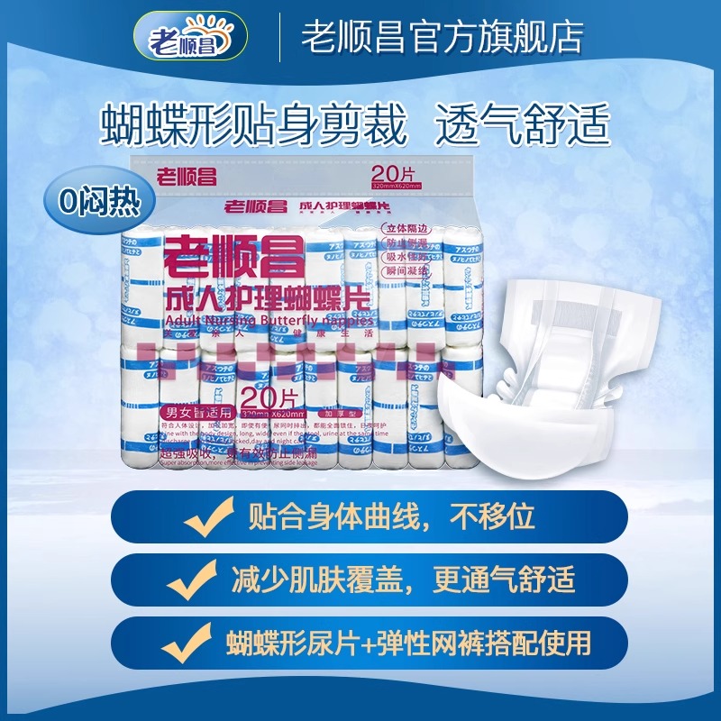 老顺昌蝴蝶片成人纸尿片裤老年人尿布湿垫男女尿不湿护理垫2包装