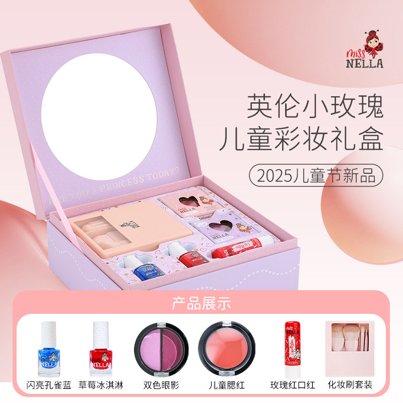 MissNella儿童化妆品礼盒是一款专为女童设计的新年生日礼物,安全无毒,温和亲肤,适合3岁以上女孩使用。产品采用天然植物成分,不含防腐剂、矿物油及刺激性化学物质,通过多项国际安全认证,呵护宝宝娇嫩肌肤。礼盒内含腮红、眼影、口红、指甲油等丰富彩妆,色彩柔和亮丽,满足小女孩对美的探索与想象。包装精美梦幻,附赠化妆镜与收纳袋,既实用又具仪式感。让孩子在安全的前提下体验角色扮演的乐趣,培养审美与自信,是送给小公主的贴心新年礼物,让每个女孩在快乐中绽放童真光彩。