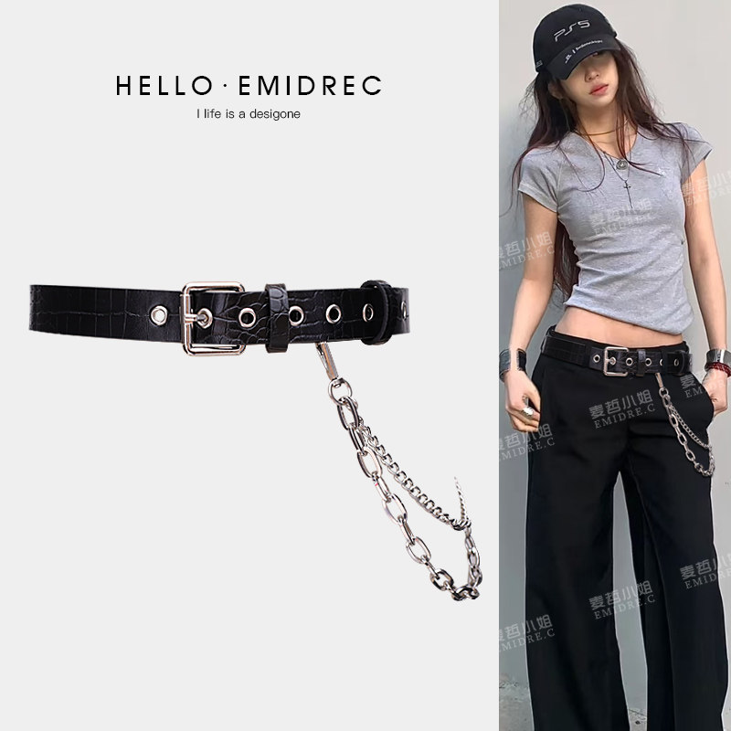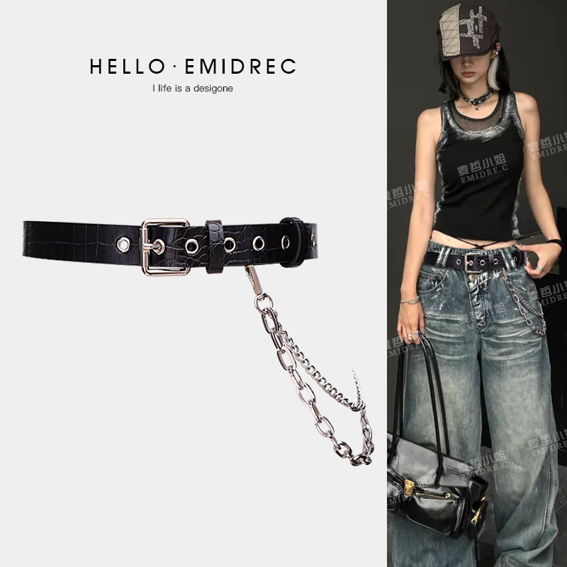 天猫腰带配饰女y2k朋克美式复古金属链条裤链装饰配阔腿牛仔裤皮带宽