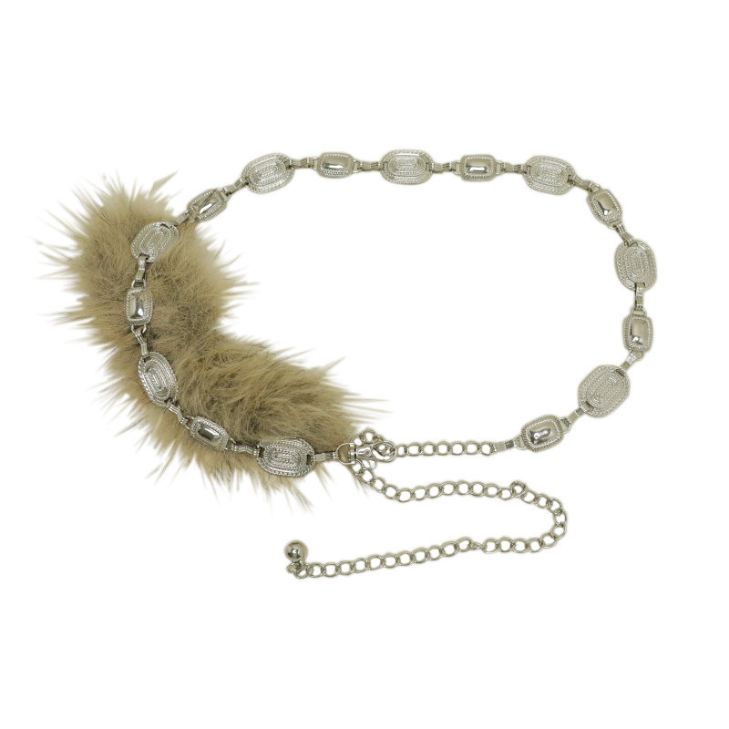 淘宝银色金属毛毛拼接腰带女高级感配裙子牛仔裤链条装饰百搭腰链配饰