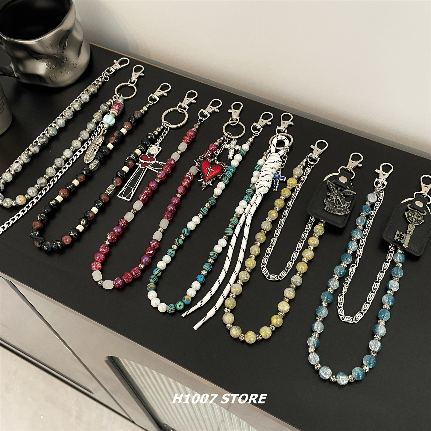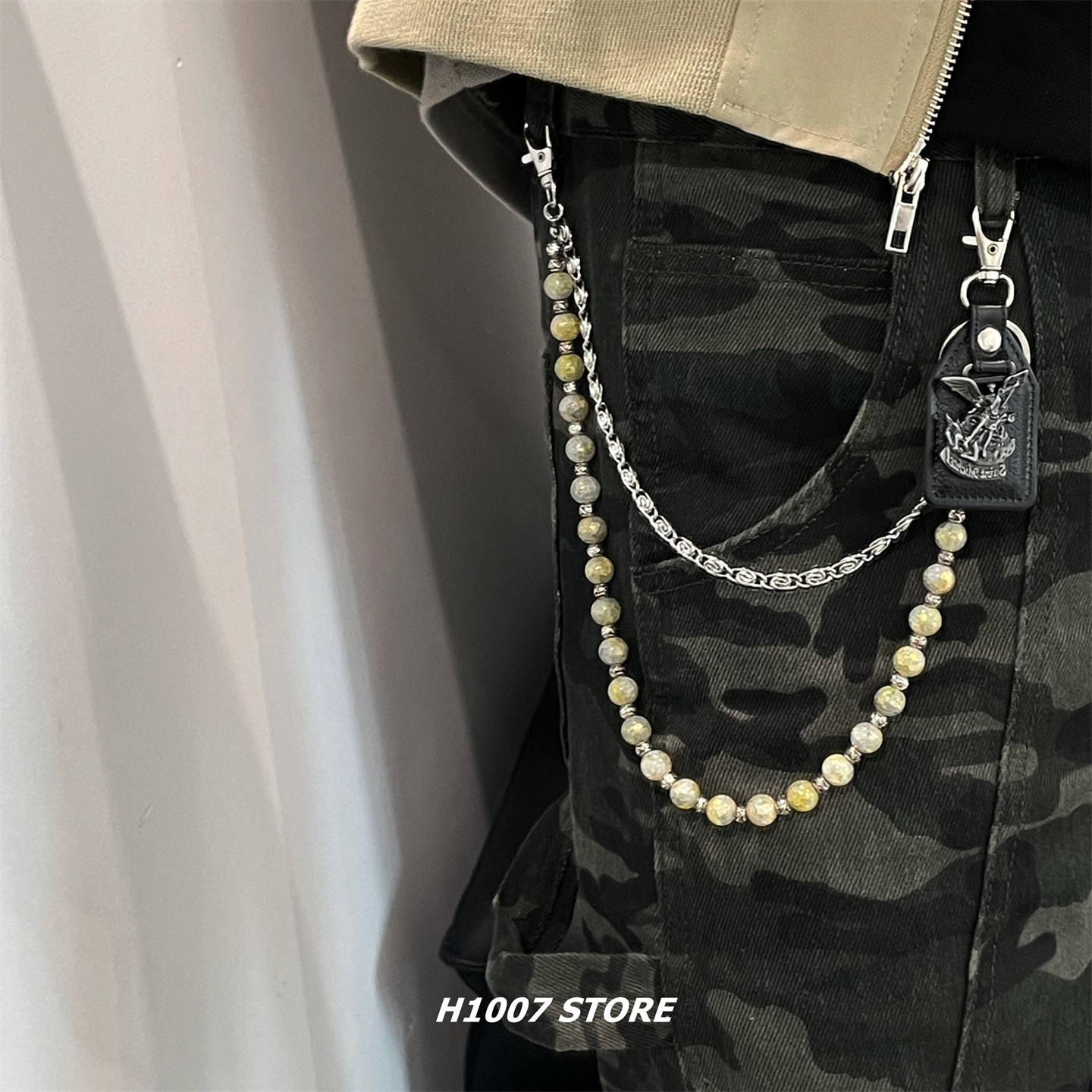 小心袖口"Cleanfit复古做旧红玛瑙串珠裤链日常百搭通勤男女配饰