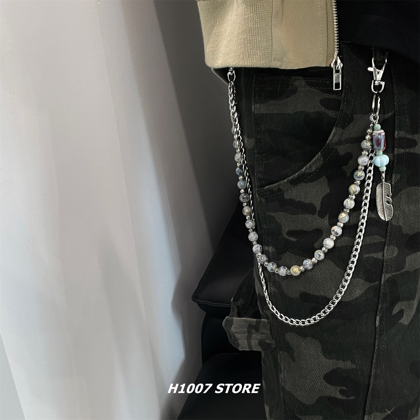 淘小心袖口"Cleanfit复古做旧红玛瑙串珠裤链日常百搭通勤男女配饰