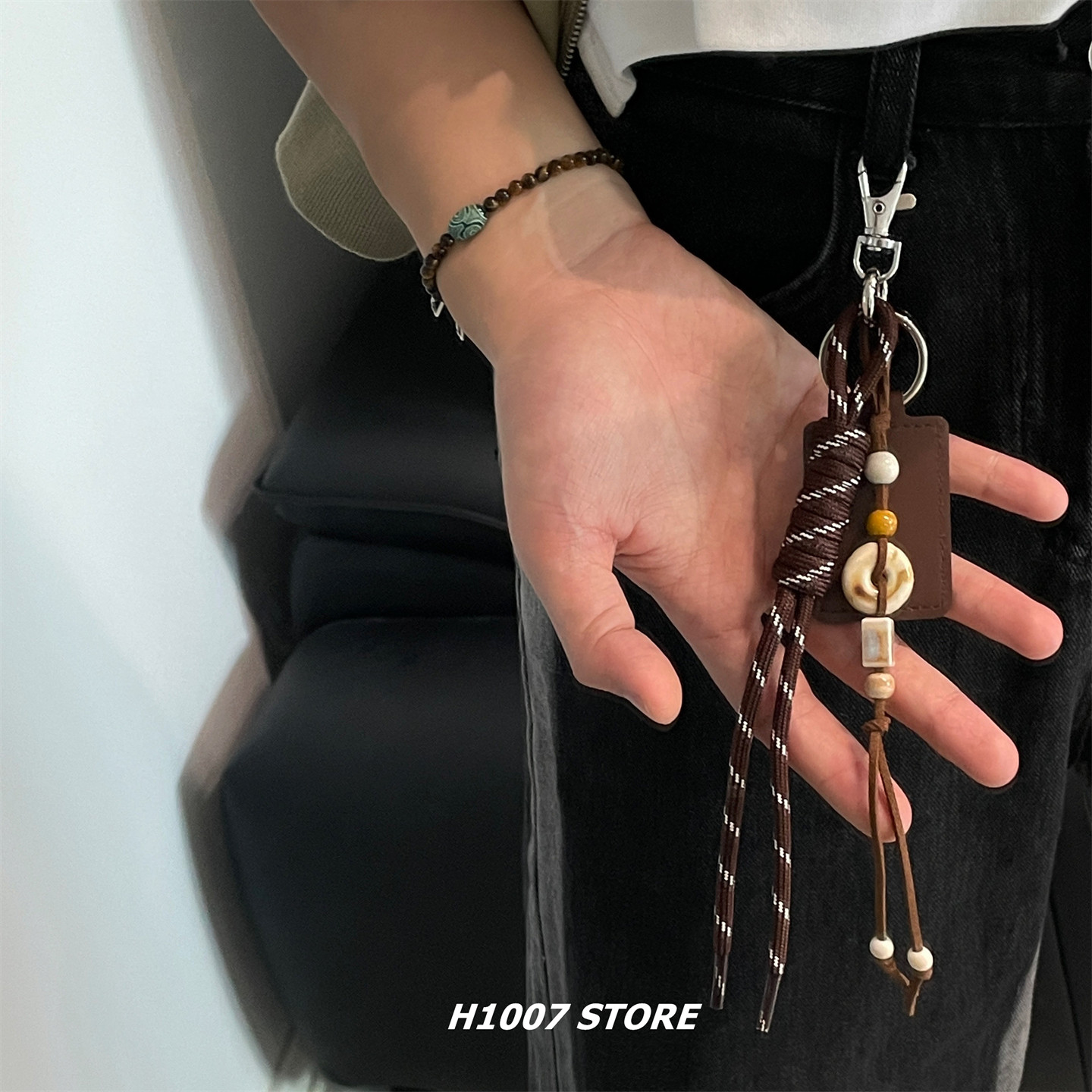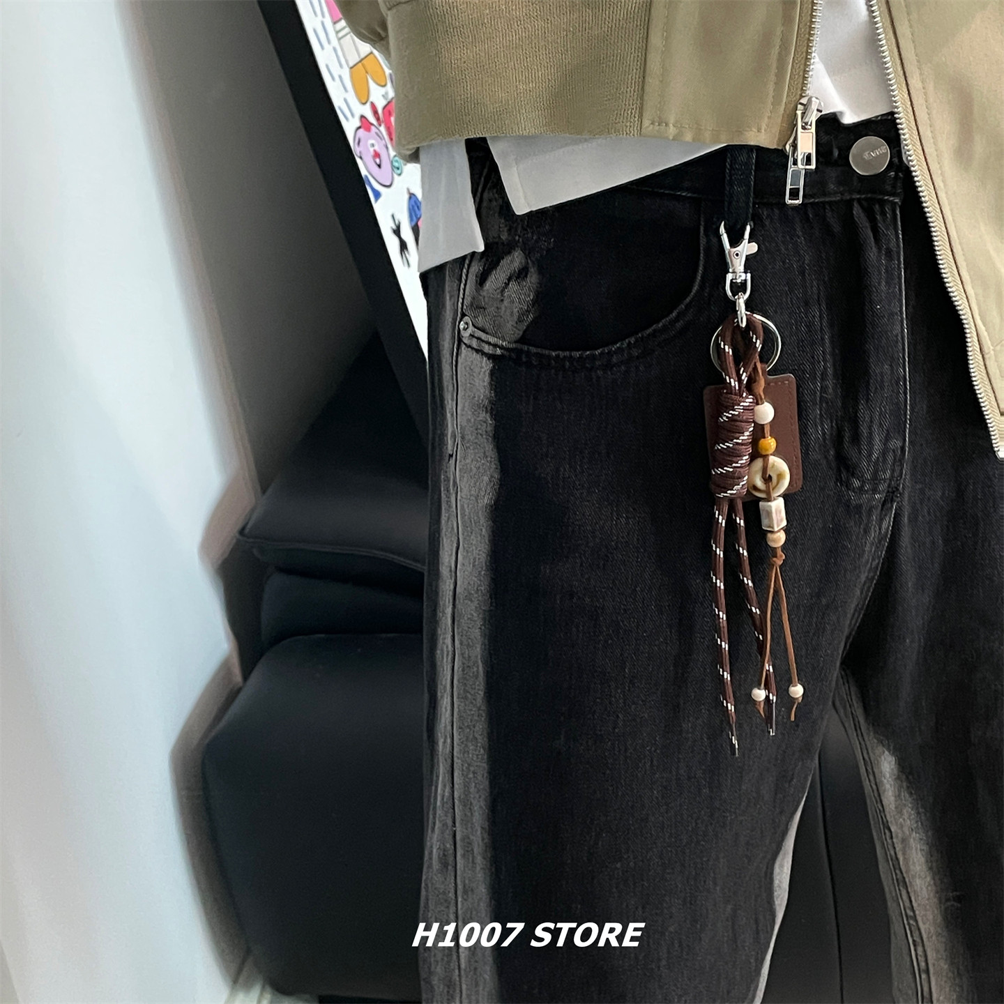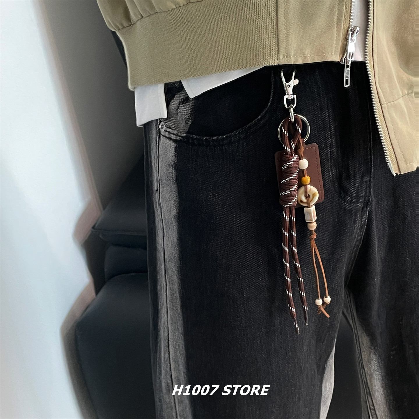 淘宝原创款陶瓷平安扣咖色编绳男款裤链女嘻哈钥匙包挂工装裤腰间挂饰