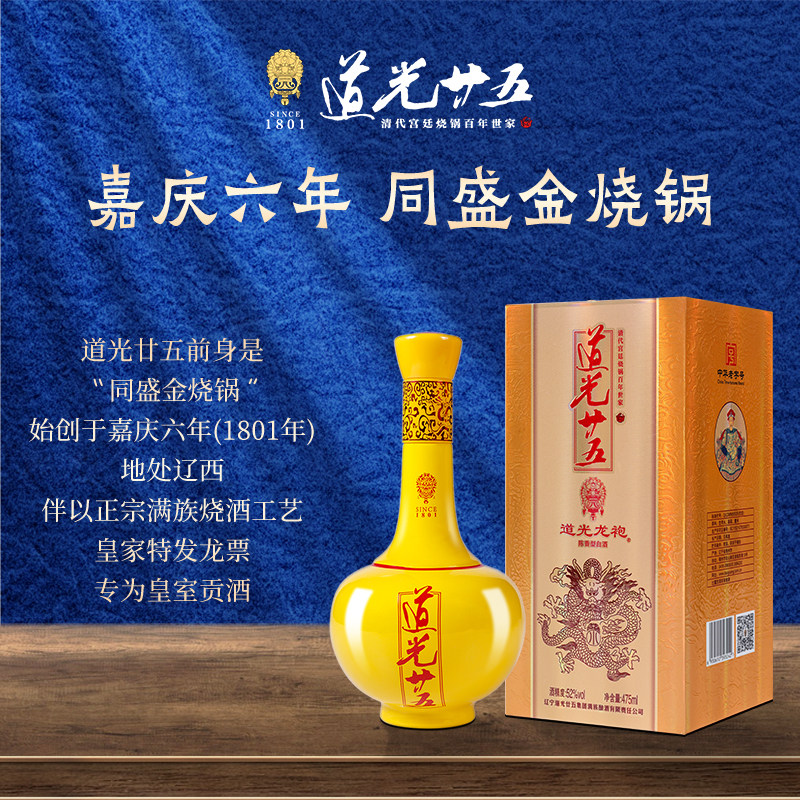 天猫道光廿五小龙袍52度白酒礼盒475ML单瓶整箱固态发酵粮食酒送礼