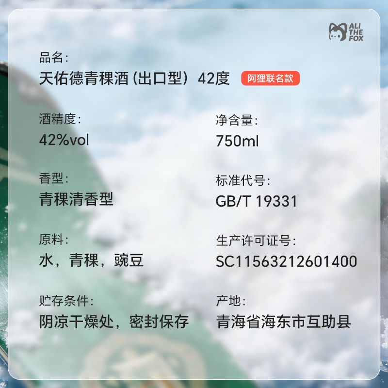 天猫天佑德青稞酒 42度出口型750mL 阿狸联名款 清香型白酒青海
