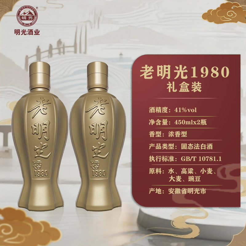 【酒厂直营】老明光1980礼盒装,精选优质高粱为原料,传承百年酿造工艺,41度黄金酒精度,口感醇厚绵柔,回味悠长。450ml×2瓶装设计,搭配典雅礼盒包装,彰显品质与心意。作为安徽地方经典白酒品牌,老明光承载着深厚的历史底蕴与匠心精神,酒厂直营保障正品,品质放心。无论是中秋、春节等传统佳节,还是走亲访友、商务馈赠,此款礼盒装皆是体面之选。送出一份老明光,传递的不仅是美酒,更是对传统文化的敬意与对收礼人的诚挚祝福。节日送礼,就选老明光1980礼盒装,礼到情更浓。