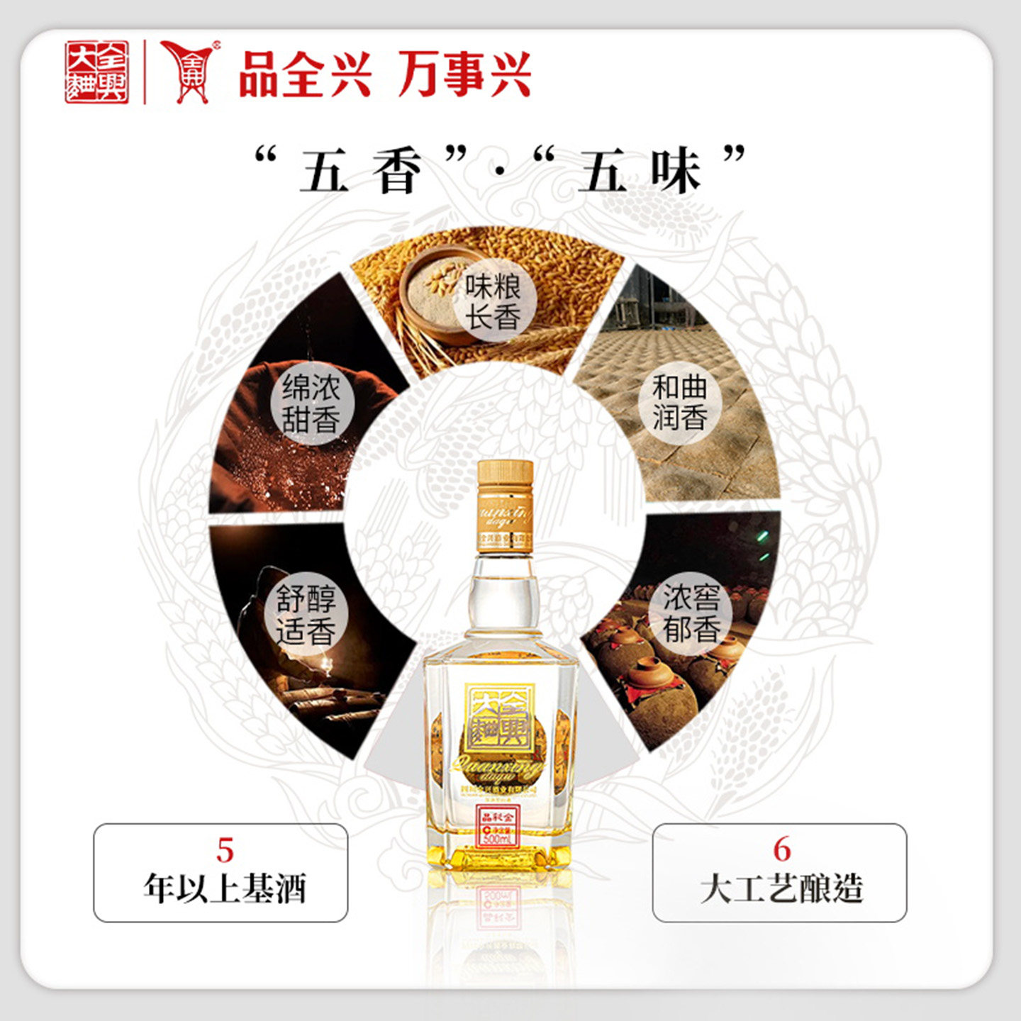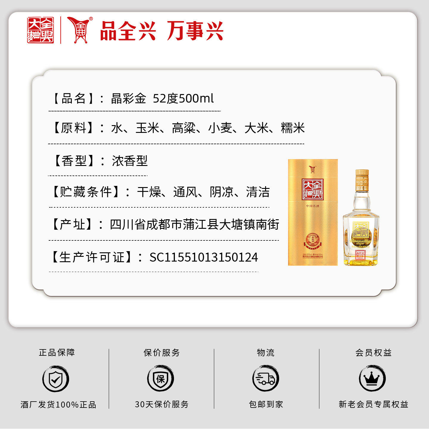 天猫【酒厂直营】成都全兴大曲晶彩金52度500ml浓香型纯粮高度白酒