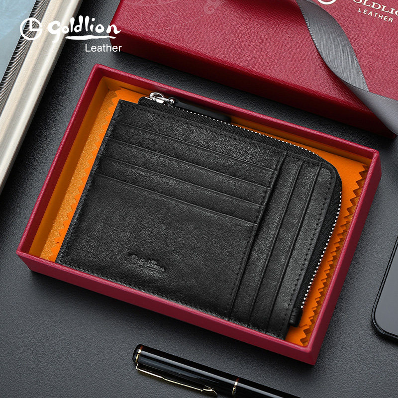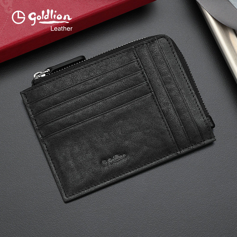 天猫金利来真皮卡包男头层牛皮拉链零钱包简约时尚银行卡套卡夹收纳包
