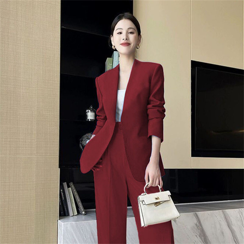 淘宝女西服上衣外搭外套西装裤子两件套装西裤跳舞表演出服职业工装会