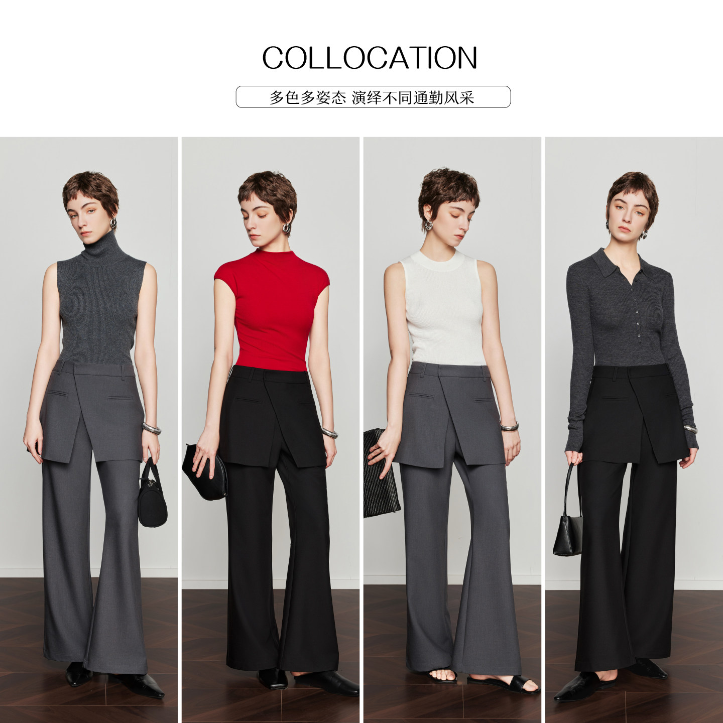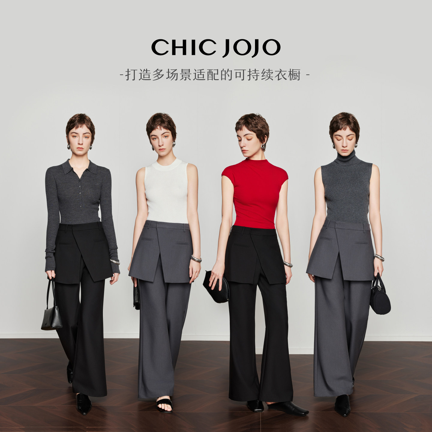 天猫【匿形派对】裙帘超模裤丨CHICJOJO灰色休闲裤女26春新款微喇西裤