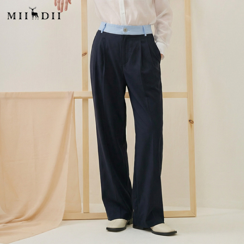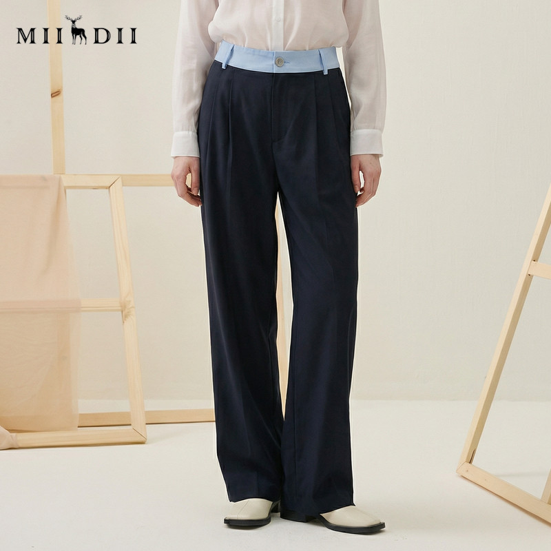 天猫谜底百搭裤子女2025秋轻朋克风腰头拼接西裤直筒裤长裤257MK7762