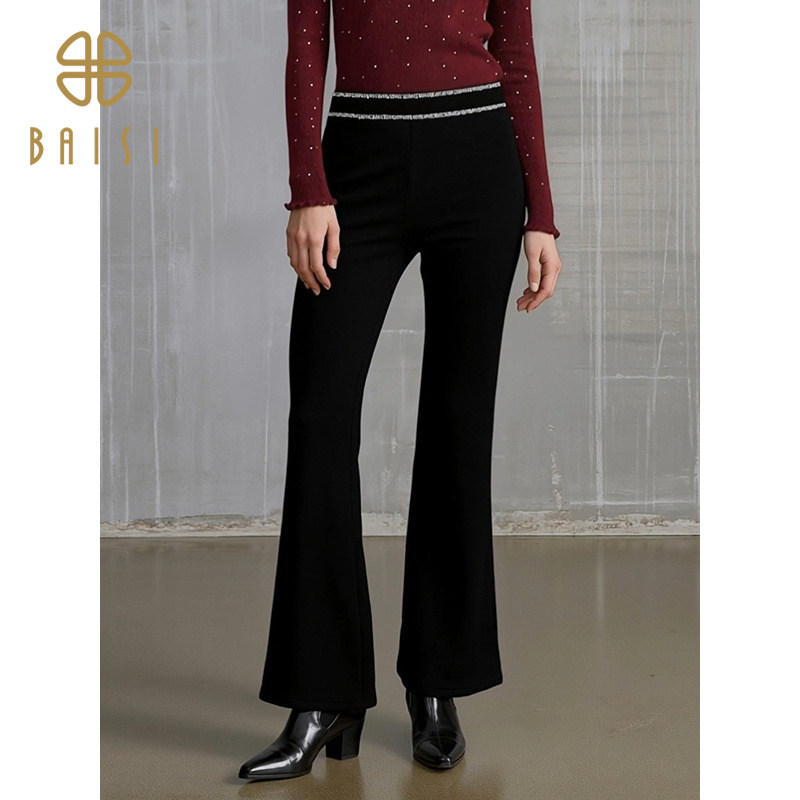 烫钻微喇裤子女高腰显瘦长裤2026新款黑色西裤加绒直筒休闲喇叭裤