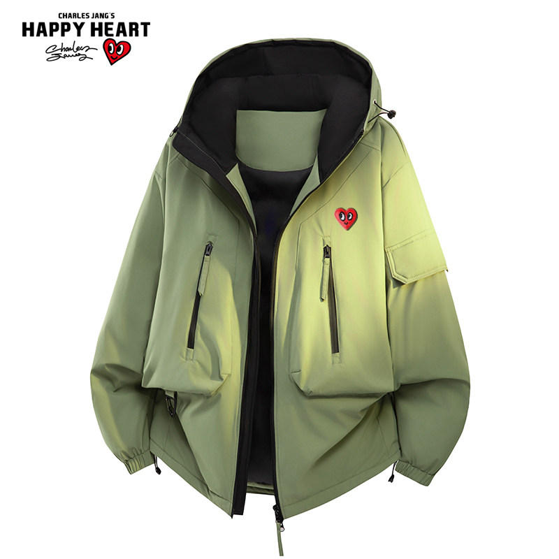 天猫查尔斯桃心 美式撞色棉服男2025年冬季连帽加厚保暖工装棉衣外套
