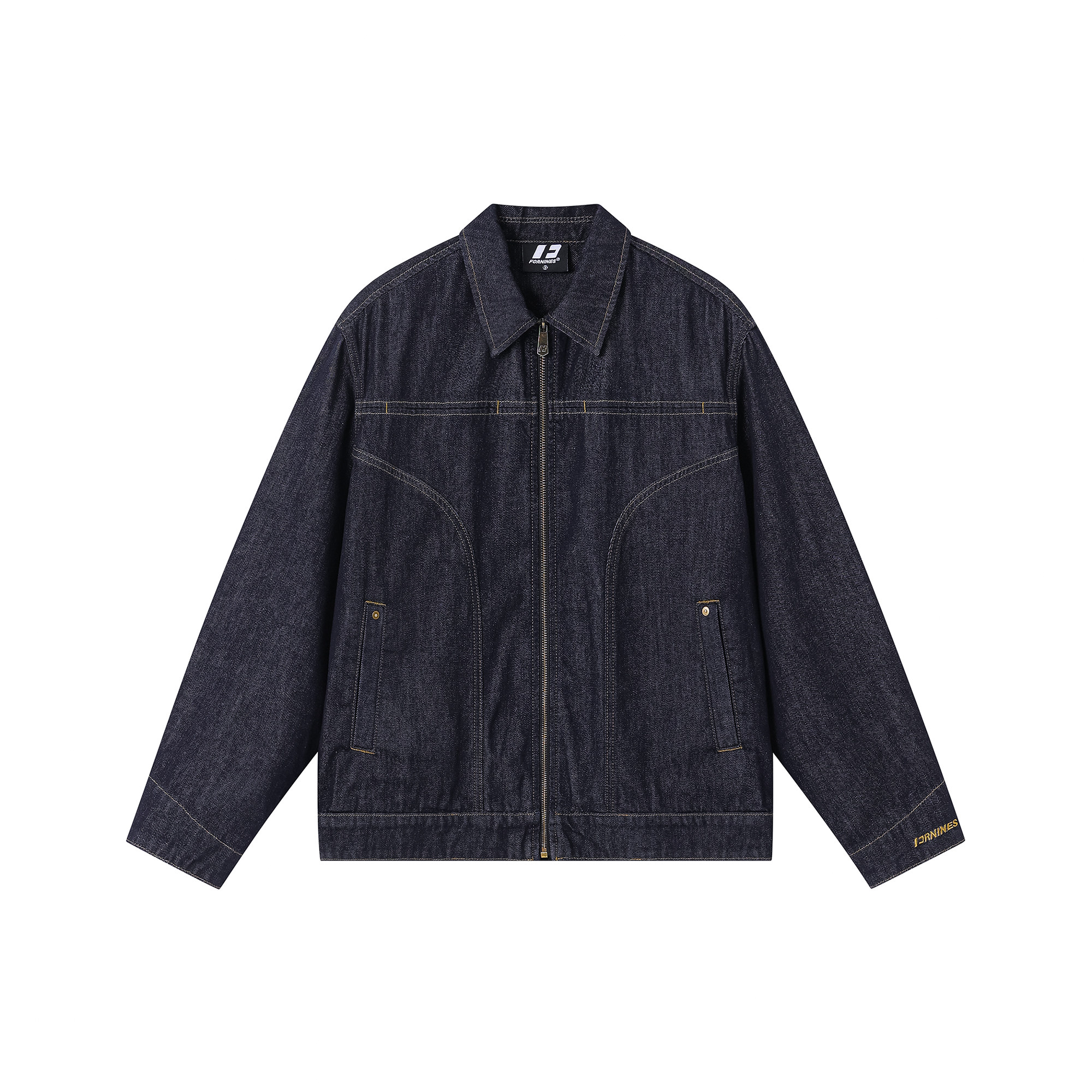 天猫FORNINES设计感莱赛尔牛仔外套男女2026春季情侣翻领刺绣复古外套