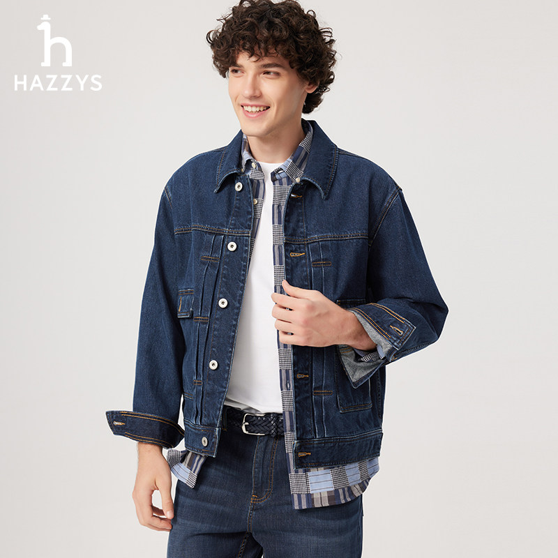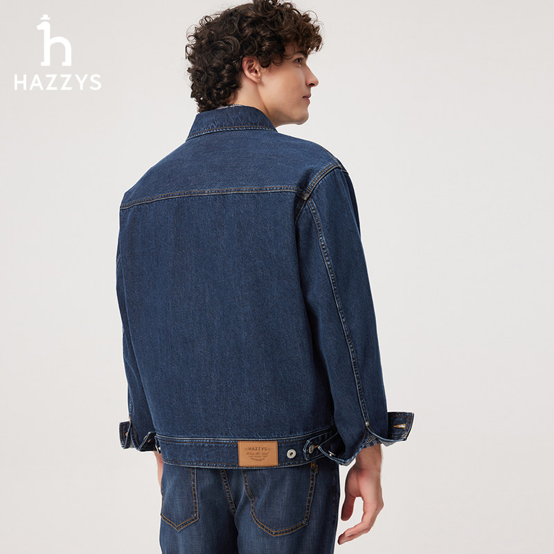 天猫Hazzys哈吉斯春季新款男士翻领复古时尚牛仔外套休闲纯棉宽松上衣