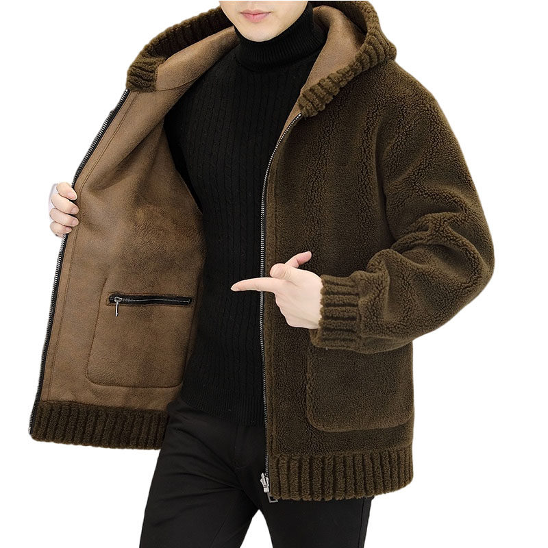 皮毛一体男2025冬季加绒加厚麂皮绒短款机车服棉服男装羊羔毛外套