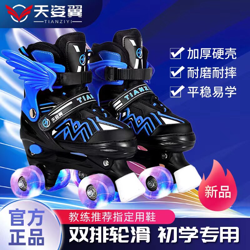 天溜冰鞋儿童双排轮滑鞋成人成年四轮旱冰鞋夜光闪光男女溜冰场专用