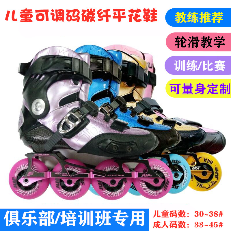 淘宝JU-F飓风儿童碳纤平花鞋花式动作训练鞋成人教练轮滑鞋ksjj溜冰鞋