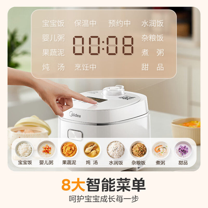 美的迷你电饭煲专为1-2人家庭设计,小巧精致,节省厨房空间。采用优质陶瓷内胆,天然健康,0涂层、0氟添加,杜绝化学残留,使用更安心。内胆受热均匀,锁住米饭原香,口感软糯香甜。具备多功能烹饪模式,可煮饭、煲汤、煮粥、蒸菜,一锅多用,满足多样需求。智能控温系统精准调节火候,防溢设计安全省心。操作简便,一键启动,适合上班族、学生及小家庭使用。清洁方便,内胆易冲洗,耐用易保养。美的品质保障,让每一餐都健康美味,是精致生活的理想之选。