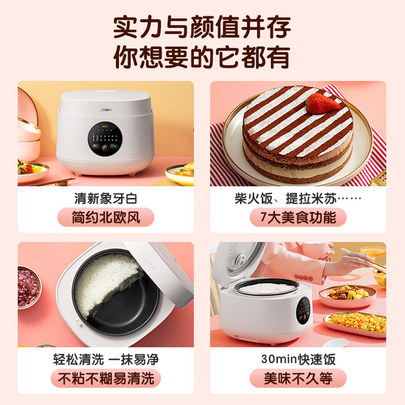 天猫美的华凌电饭煲家用电饭锅1-2-3人迷你智能多功能3L迷你煮饭蒸煮