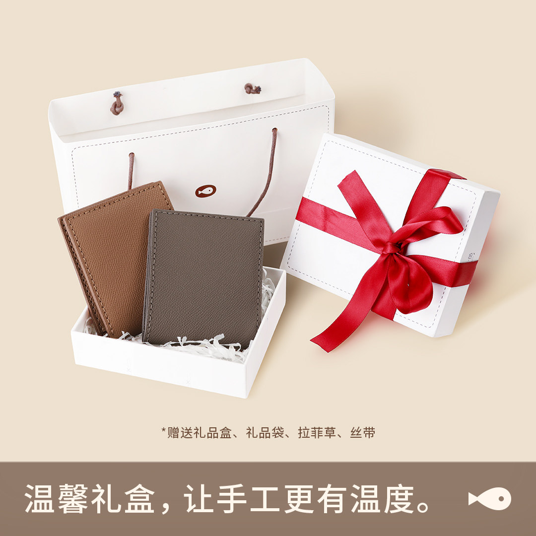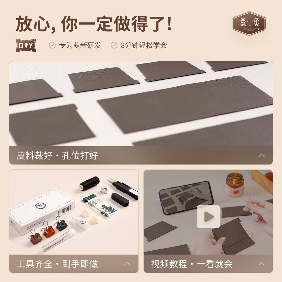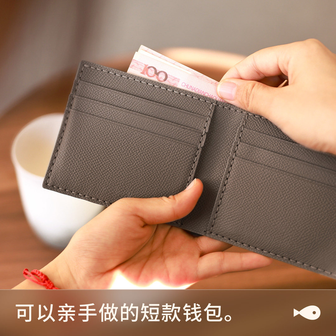 天猫蠢小鱼头层牛皮情侣钱包多功能保护零钱卡包diy手工材料包自制作