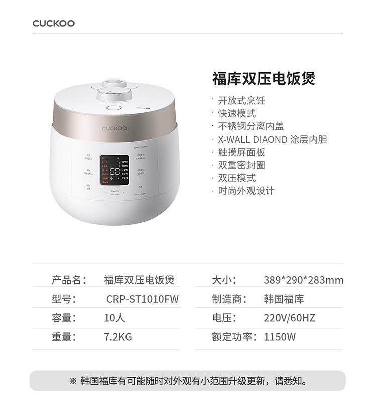 天猫福库CUCKOO韩国电饭煲原装进口中韩英语音提示电饭锅5L10人1010FW