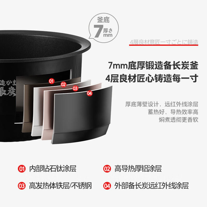 日本东芝无涂层真钛电饭煲3L家用2-4人进口涂层小型迷你饭锅10HPC
