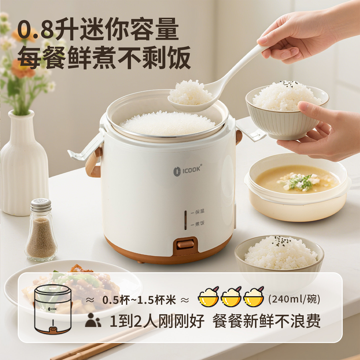 ICOOK电饭煲家用1到2人智能迷你电饭锅一人食宿舍小型电饭煲正品