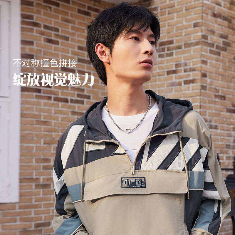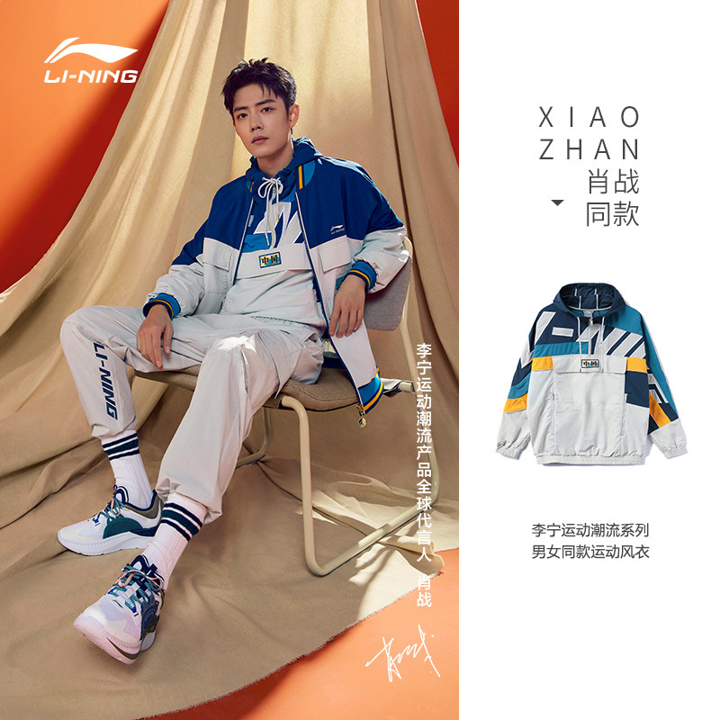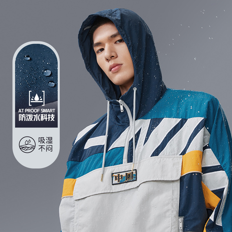 天猫李宁运动潮流系列男女同款秋防泼水宽松运动连帽风衣AFDR401-B吕