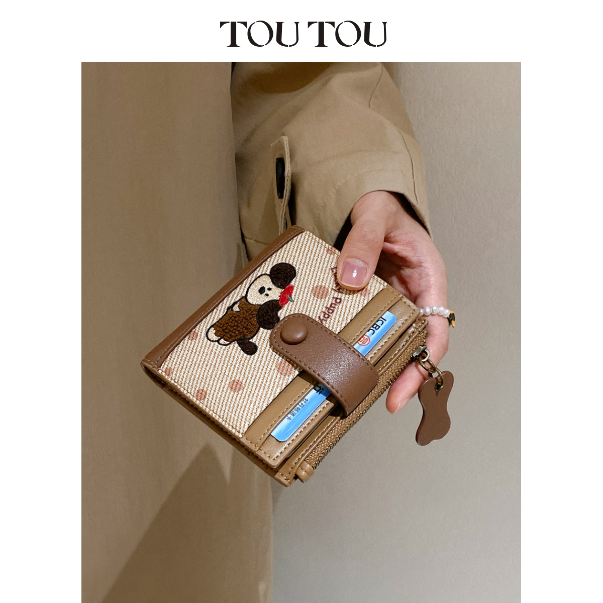 天猫TOUTOU新款棕色钱包卡包一体可爱轻薄证件收纳零钱包儿童生日礼物