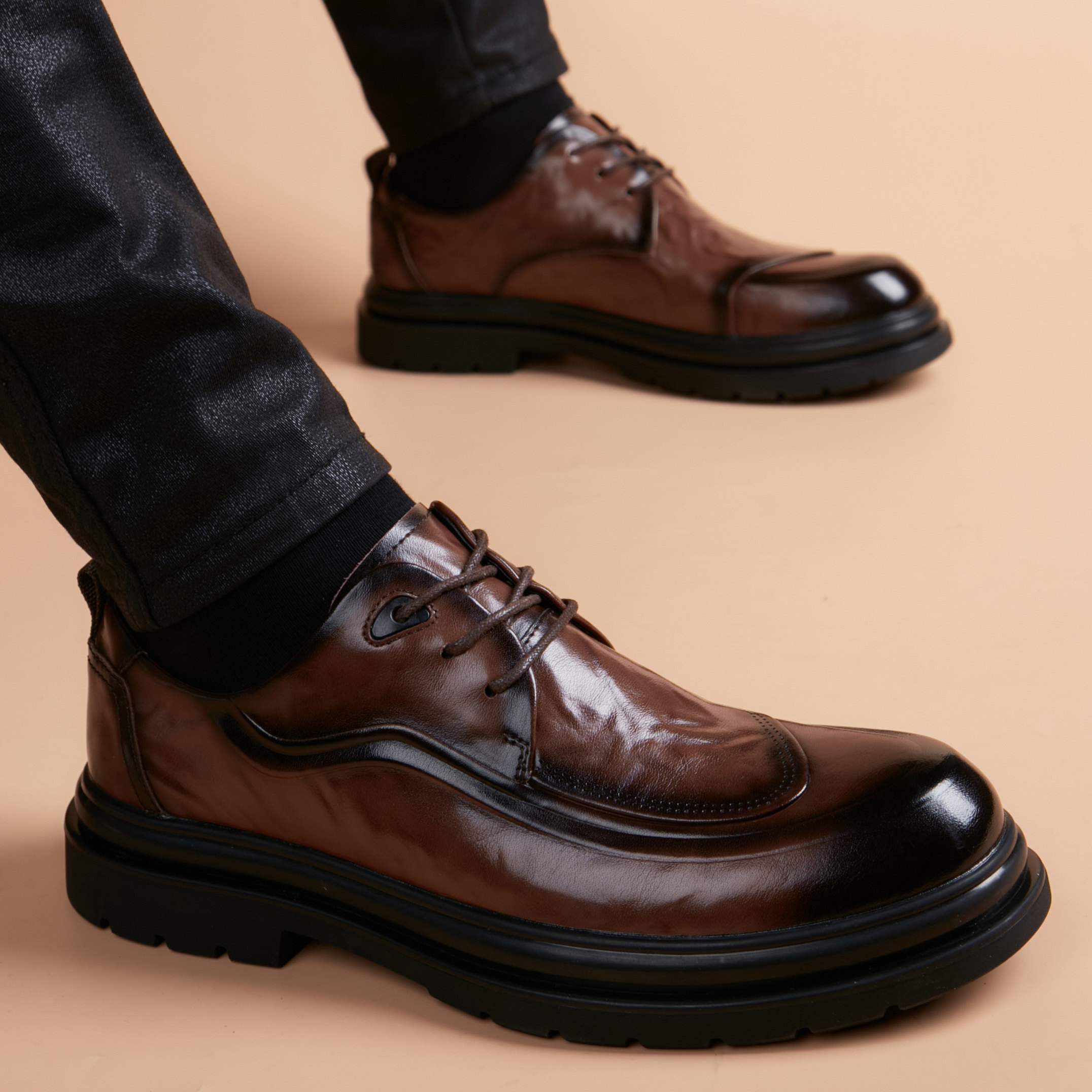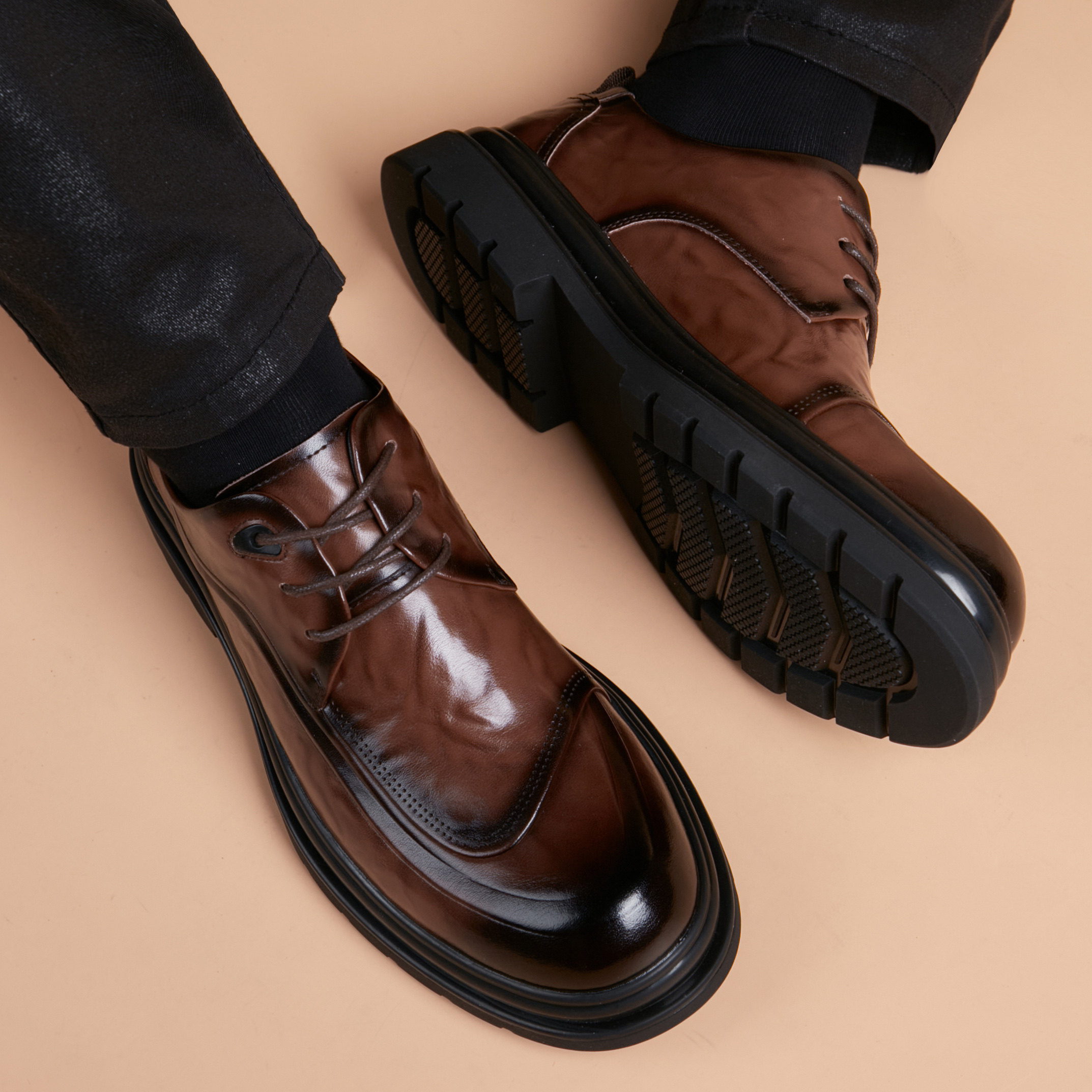 淘商务增高皮鞋男软底高级感隐形内增高正装英伦男士休闲鞋新郎婚鞋