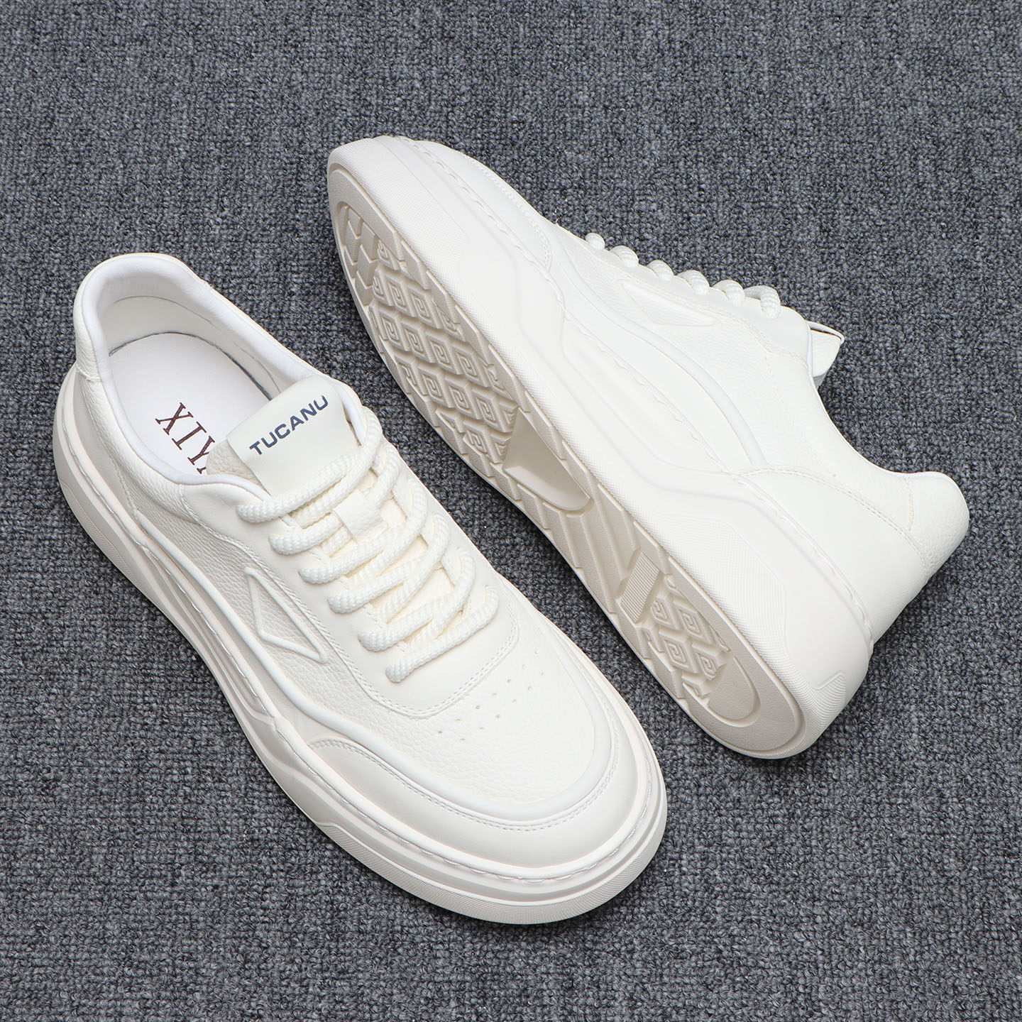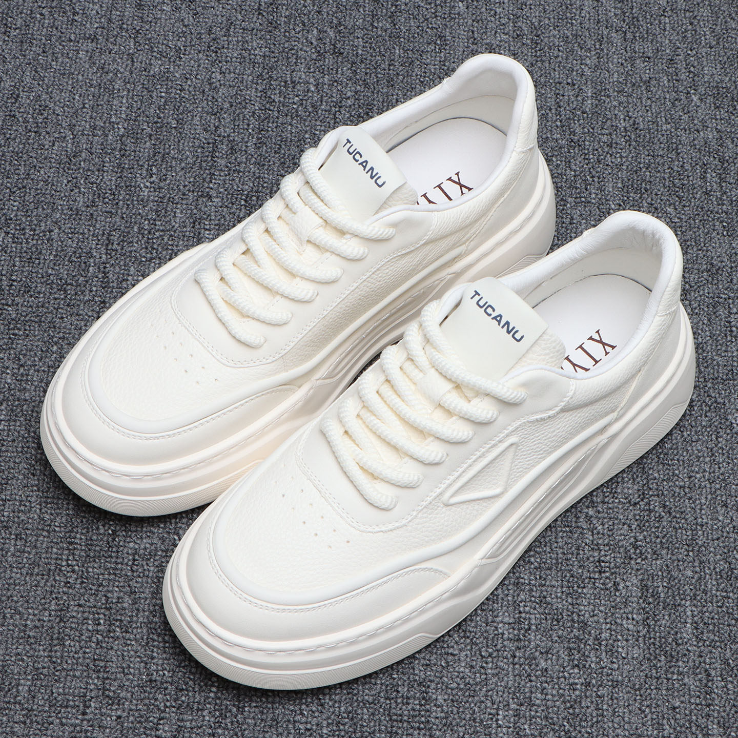 淘宝休闲板鞋男2025新款头层牛皮厚底运动男鞋轻便百搭真皮小白鞋男款