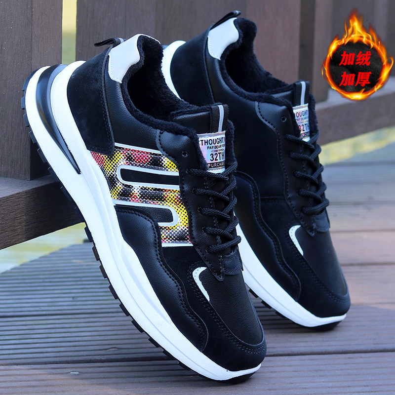 淘宝男鞋秋冬季新款加绒保暖皮面鞋防水运动鞋潮流百搭防滑休闲跑步鞋
