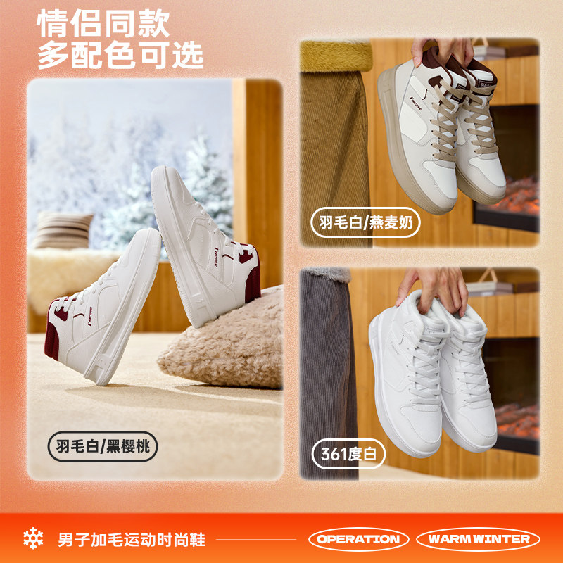 天猫361加绒鞋男鞋运动鞋2026冬季棉鞋加毛保暖鞋休闲鞋子高帮板鞋男