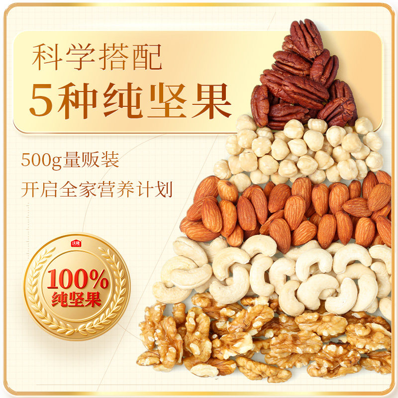 天猫沃隆每日坚果500g罐装混合纯坚果果仁妈妈休闲营养零食健康小吃