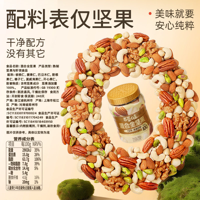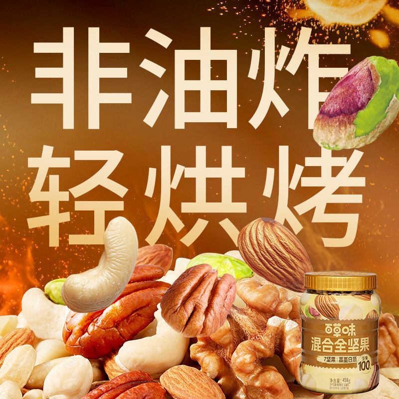 天猫百草味每日坚果纯罐装混合干果仁全坚果健康零食早餐孕妇原味营养