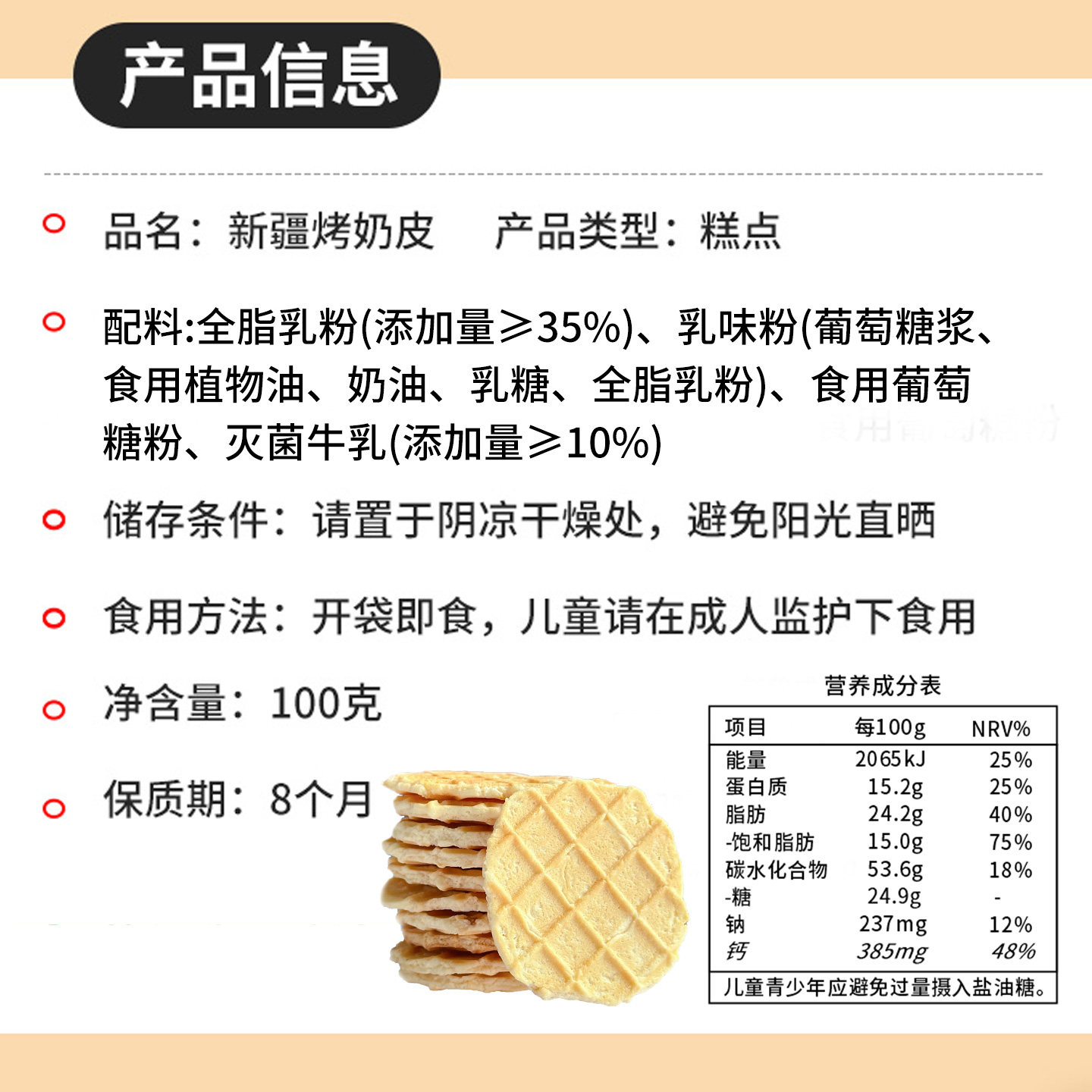 天猫新疆特产美食烤奶皮100g奶制品营养休闲健康零食内蒙古特产奶皮子