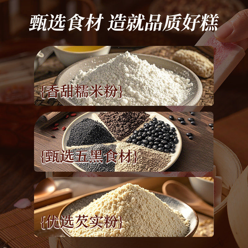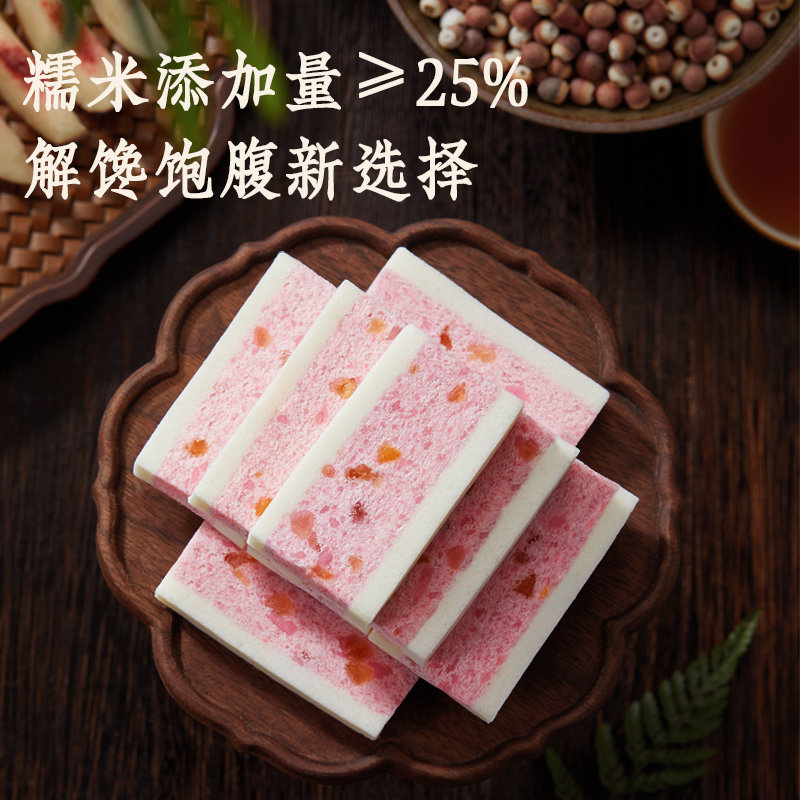 三只松鼠白桃五黑芡实糕八珍糕,是一款融合传统养生理念与现代口感的中式健康点心。精选黑芝麻、黑米、黑豆、黑桑葚、黑枸杞“五黑”食材,搭配芡实、山药等八珍草本,营养丰富,助力日常滋补。创新加入清甜白桃果粒,口感层次丰富,软糯不粘牙,甜度适中。无添加防腐剂,采用低温烘焙工艺,保留食材本真营养。既是营养早餐的便捷选择,也是办公、休闲时的健康零食。三只松鼠以匠心工艺,将传统食养智慧转化为现代人的日常美味,让健康与美味兼得,开启元气满满的一天。