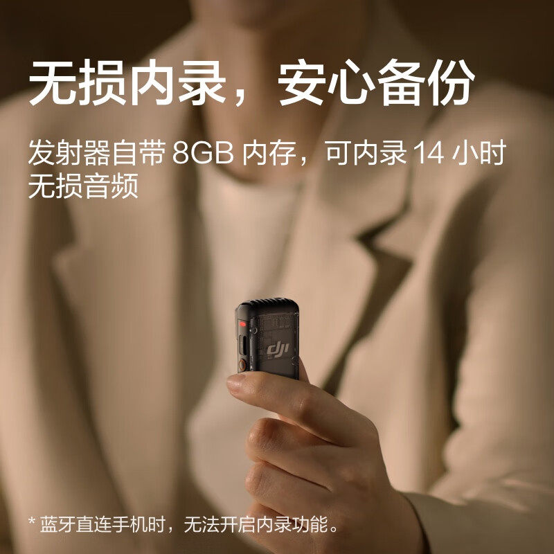 DJI大疆Mic 2发射器是一款专业级无线麦克风,专为高质量音频录制设计。采用先进的智能降噪技术,有效过滤环境杂音,确保人声清晰纯净,适用于采访、短视频创作、直播等多种场景。支持蓝牙直连功能,可快速与手机、相机、电脑等设备配对,操作便捷。内置高品质麦克风,具备高灵敏度和宽广频响范围,音质细腻真实。发射器轻巧便携,续航持久,搭配接收器使用可实现远距离稳定传输。无论是专业创作者还是内容爱好者,DJI Mic 2都能提供稳定可靠的无线音频解决方案,显著提升音视频作品的音质表现。