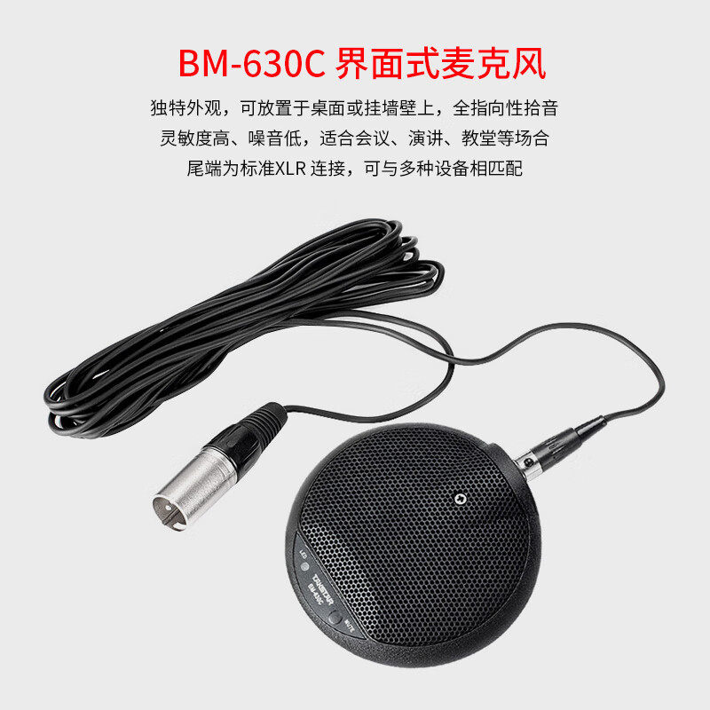得胜BM-630C是一款专为视频会议和远程办公设计的桌面式全向麦克风,采用电容式拾音技术,具备宽广的拾音范围(360°全向覆盖),可清晰捕捉会议室中各个方向的语音,确保通话音质自然流畅。该话筒需外接48V幻象电源供电,兼容主流视频会议设备及调音台,支持即插即用,操作简便。其紧凑的桌面设计节省空间,内置高灵敏度元件和降噪处理,有效抑制环境杂音,提升语音清晰度。适用于企业会议室、远程教学、直播及录音监控等场景,是提升沟通效率的专业音频解决方案。