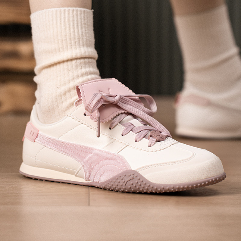 【马年新年款】Puma彪马板鞋406665,融合经典德训风格与新春喜庆元素,男女同款设计,简约百搭。采用优质皮革与织物拼接鞋面,T型头设计复古有型,薄底轻盈,穿着舒适不累脚。鞋侧经典跑道Logo点缀,细节彰显品牌质感。特别融入马年限定配色,红、金、白交织,寓意吉祥迎新,节日氛围浓厚。无论是日常通勤还是休闲出行,都能轻松驾驭,展现个性潮流态度。这款兼具时尚与情怀的新年特别款,是送礼或自穿的绝佳选择,开启活力满满的新一年。