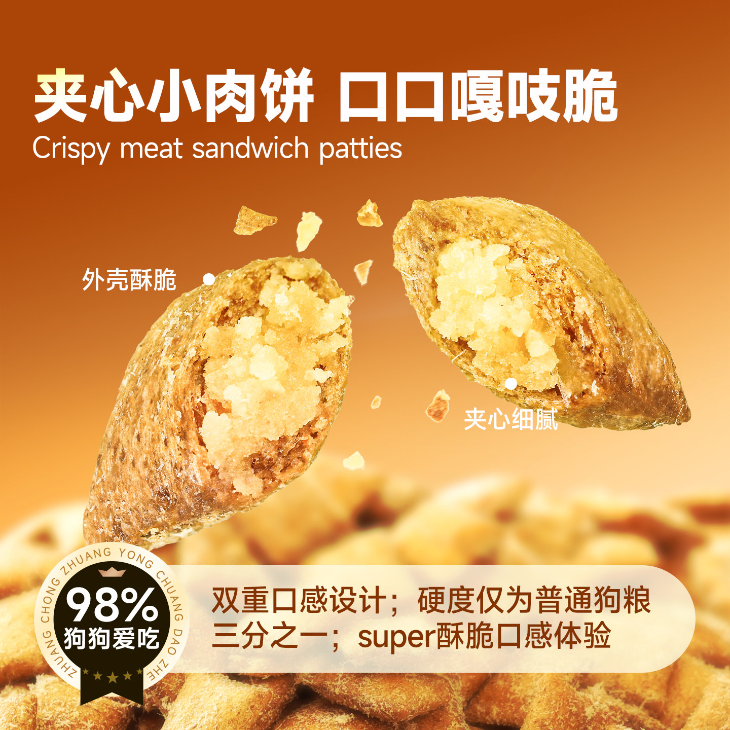 【热销100万+】耐威克鲜肉夹心狗粮,专为泰迪等小型犬精心研制,成犬幼犬皆宜。采用真实鲜肉夹心工艺,外层酥脆、内馅浓郁,锁住营养与鲜香,大幅提升适口性。精选优质动物蛋白,搭配益生菌与膳食纤维,助力消化吸收,呵护敏感肠胃。特别添加钙磷、Omega-3&6及维生素群,强韧骨骼、亮泽毛发,提升免疫力。无添加防腐剂、人工色素,安全健康。官方旗舰店直供,品质保障,百万宠主信赖之选。科学配方+美味口感,让爱犬每一餐都吃得开心、长得健壮,是小型犬家庭的首选主粮。